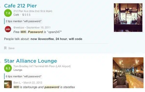 Score free wifi with social media check ins such as Foursquare!